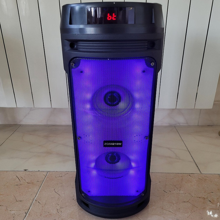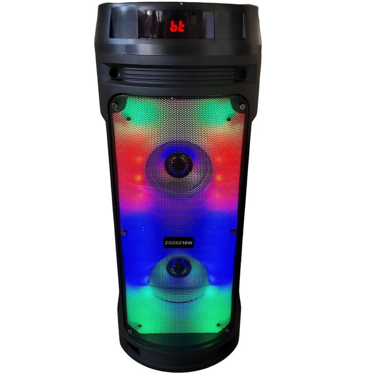 اسپیکر استوانه ای zqs 6210 w ساخته شده از از بلندگوی 6.5 اینچی با قدرت فوقالعاده بالا بیس قوی و صدای فراگیر به طوری که تا ولوم اخر به هیچ وجه صدا تغییر نکرده و صدایی دلنشین و قدرتمند را تجربه خواهید کرد . ساپورت رم فلش بلوتوث میکروفون و کنترل از راه دور از امکانات دیگر این محصول می باشد . تنظیمات اکولایزر صدا در کنار رقص نور چند حالته و طراحی بسیار زیبا و باتری قدرتمند 4500 mah که در اکثر اسپیکر ها این باتری ظرفیت کمتری دارد میتواند از نقاط قوت این محصول باشد